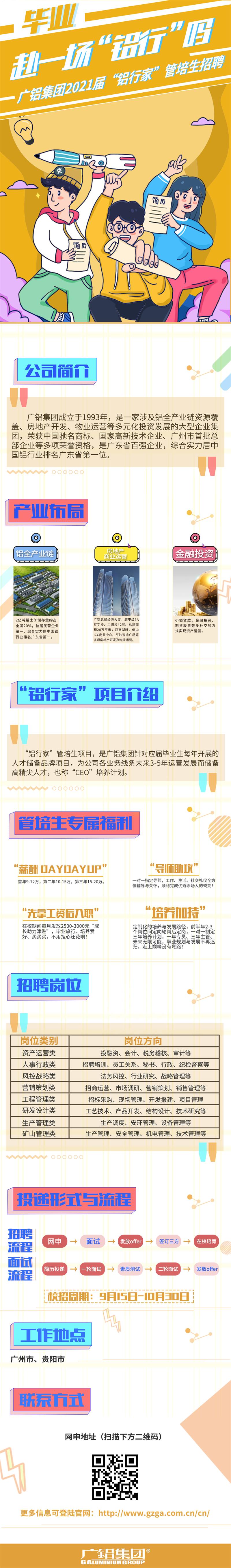 聯(lián)系廣鋁 集團(tuán)總部 分支機(jī)構(gòu) 人才招聘 社會(huì)招聘 校園招聘 招商加盟 留言 下載 廣鋁手機(jī)APP 廣鋁 for Android 手機(jī)助手掃一掃 廣鋁 for iPhone 手機(jī)助手掃一掃 ———————————— 廣鋁集團(tuán)微信公眾號(hào) 添加方式: 微信號(hào)請(qǐng)搜索:GaluminiumGroup 中文昵稱請(qǐng)搜索:廣鋁集團(tuán) 或直接用手機(jī)微信 掃描左側(cè)二維碼 ———————————— m.zhongcheng.net.cn 畢業(yè),鋁行 | 廣鋁集團(tuán)2021屆校園招聘正式啟動(dòng)!