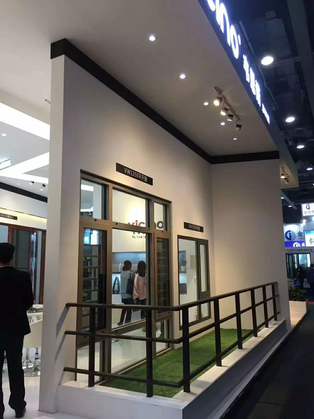 廣鋁集團本屆展會設計簡潔高端,以韋思諾vicino品牌為主,其中有隔熱平開門、節能平開窗、隔熱提升推拉門、推拉窗等,型材簡潔而不失穩重,給人一種大氣而安全牢固的溫馨感,得到了眾多買家的認可和關注。